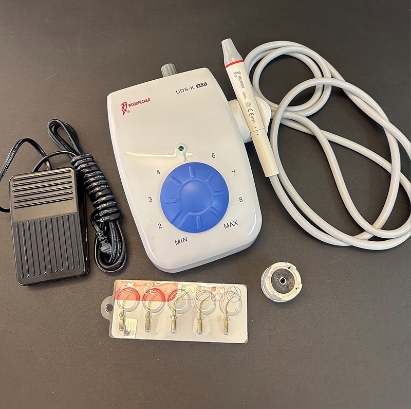 دستگاه های جرمیگری دندانپزشکی جزو دستگاه های اصلی یک مطب یا کلینیک دندانپزشکی میباشند. کار دستگاه های جرمگیری برداشت رسوبات و .. از روی دندان بیمار میباشد. این دستگاه با ایجاد ارتعاش بر روی دندان بیمار ، باعث جدا شدن این رسوبات میشود.جرمگیر وودپیکر Woodpecker مدل UDS-K Led یکی از پرفروش ترین کویترون جرمگیری های دندانپزشکی برند وودپیکر چین میباشد و این دستگاه تک کاره با قدرت بسیار بالا مناسب کلینیک ها با لود بالای بیمار است.جرمگیر وودپیکر UDS K Led دارای قدرت ارتعاش ۲۸kHz ، دارای کالیبراسیون خودکار برای حفظ قدرت ارتعاش و قابلیت تنظیم قدرت ارتعاش تا 10 مرحله است. هندپیس این جرمگیر از نوع LED و فایبراپتیک است و قابلیت اتوکلاو شدن نیز دارد.در داخل جعبه دستگاه کویترون جرمگیری وودپیکر uds K Led k نوری تعداد 5 سرقلم جرمگیری از نوع تیتانیوم قابل اتوکلاو قرار گرفته است.