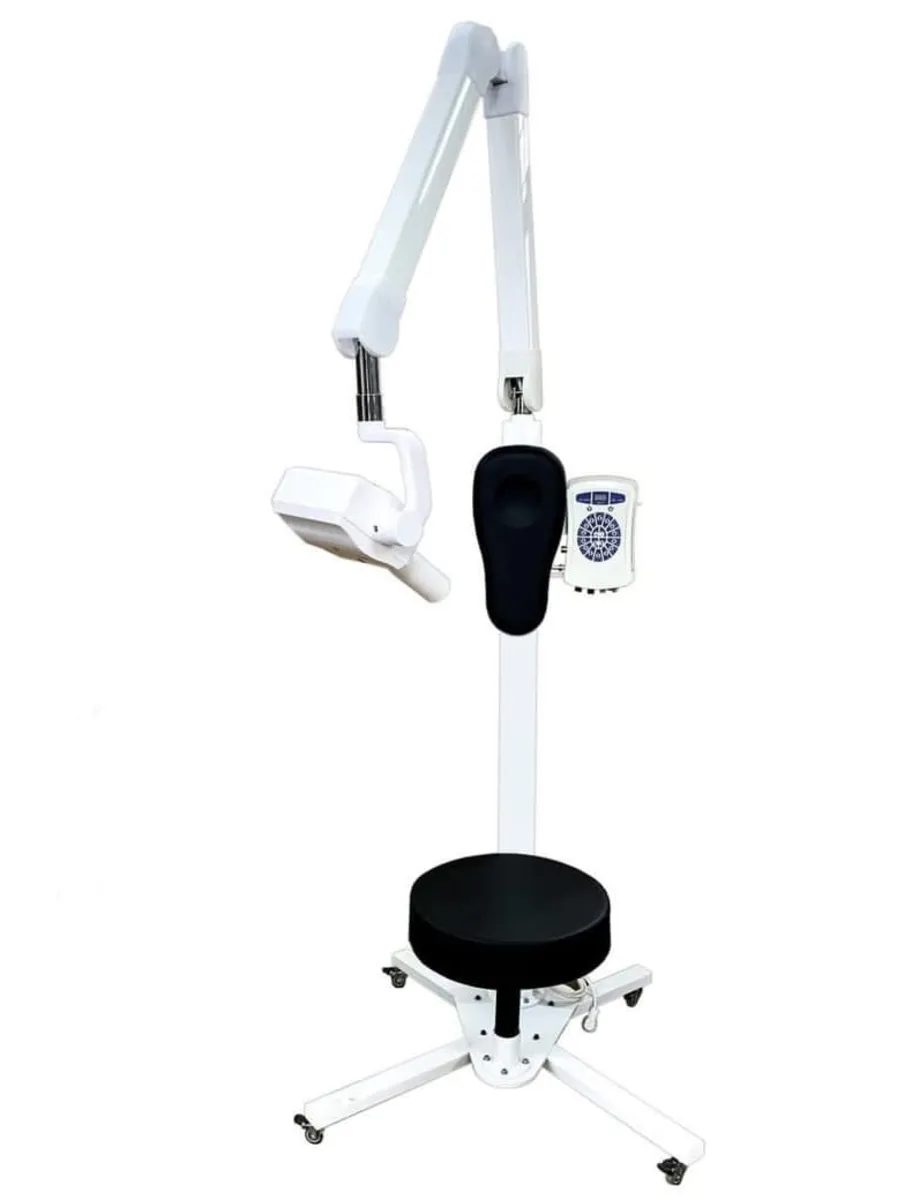 بازو سه شکن قرار گرفته بر روی این دستگاه نیز توانایی جهت دهی برای گرفتن انواع عکس از دندان بیمار را داراست. هد رادیوگرافی الگانت پایه دار ساخت چین است که دارای لوله سربی به طول 20 سانتی متر است و از نشت اشعه تا مقدار بسیار زیادی جلوگیری میکند.